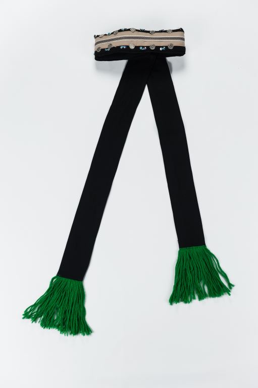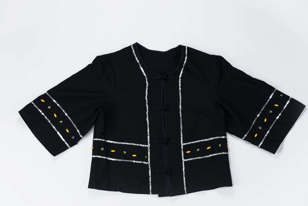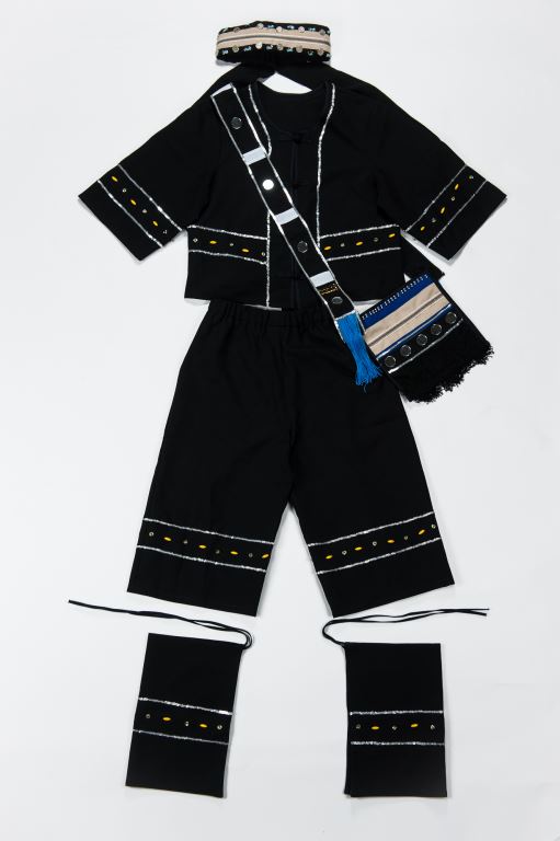 該組服飾有:頭飾、上衣、攜物袋(檳榔袋)、褲子等物件,為新社部落的噶瑪蘭人於近代民族復名運動時,所重製的噶瑪蘭族服飾。