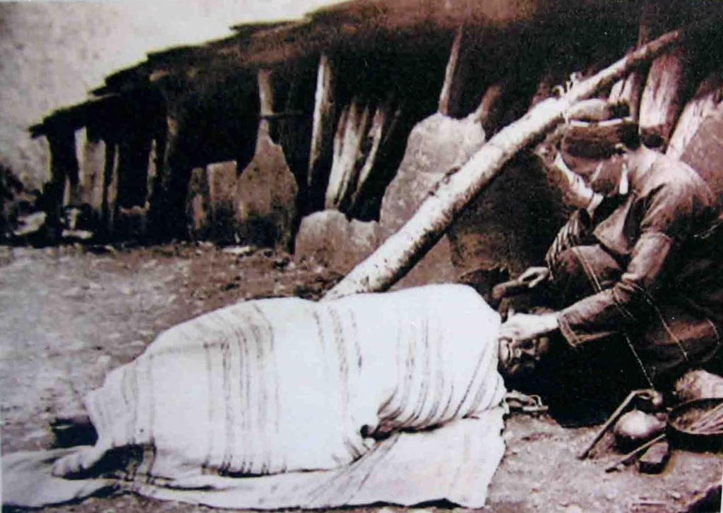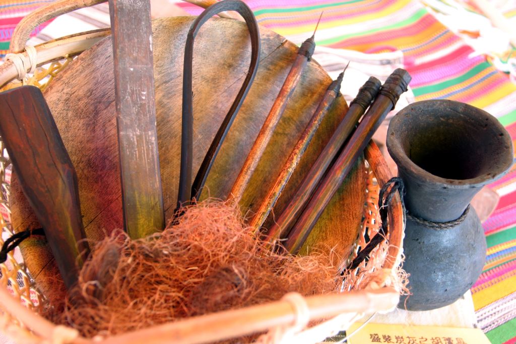 文面的道具是一支帶針的木耙、敲打用的木槌、刮血的木勺及染色用的布條,文面的顏料是木炭泡水而成的染液,文面時將沾滿染液的布條覆蓋在文面的部分,用來突顯條紋的顏色,文面的過程需要一天的時間才能完成,據說非常疼痛,尤其年輕少女經常忍痛呻吟,而且文面後因為腫脤,需要臥床休養一周,這期間只能吃稀飯類的清淡食物。文面的代價是要付給文面師一條貝殼項鍊,在當時是最珍貴的謝禮。