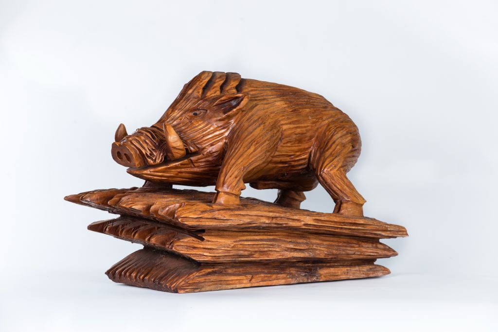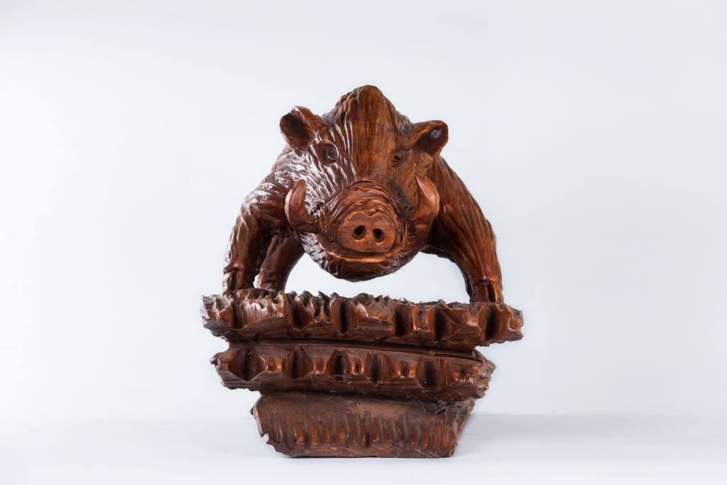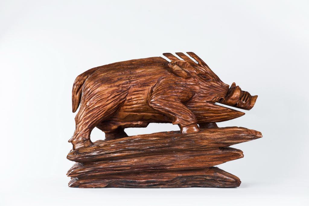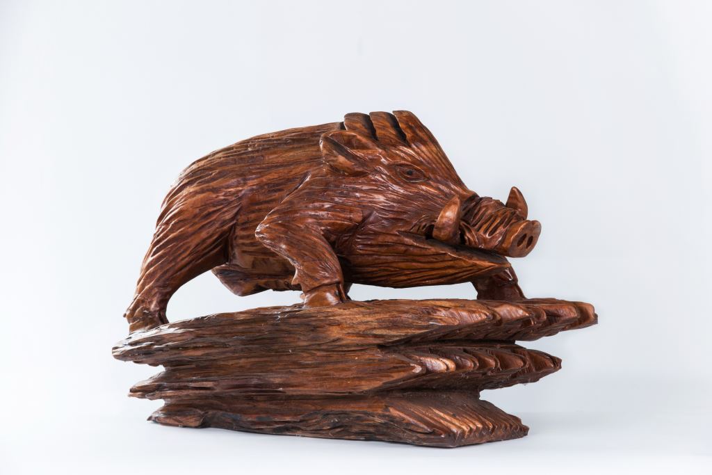 肯恩基認為在雕刻的過程中,最難的就是如何從山豬的形體、毛髮、牙齒及眼神,表達出山豬孤傲兇猛的野性,經過許久的嘗試與揣摩,肯恩基已能得心應手的將山豬的神韻呈現在木雕的作品中,山豬也成為他最受歡迎的木雕作品之一。