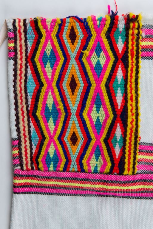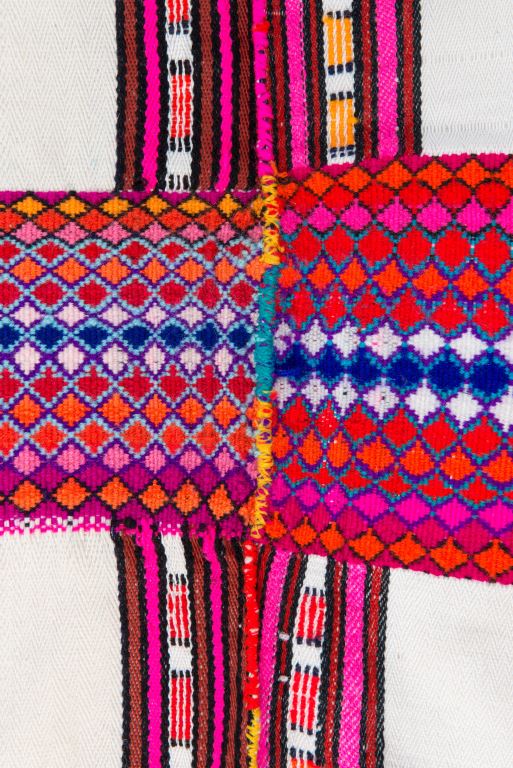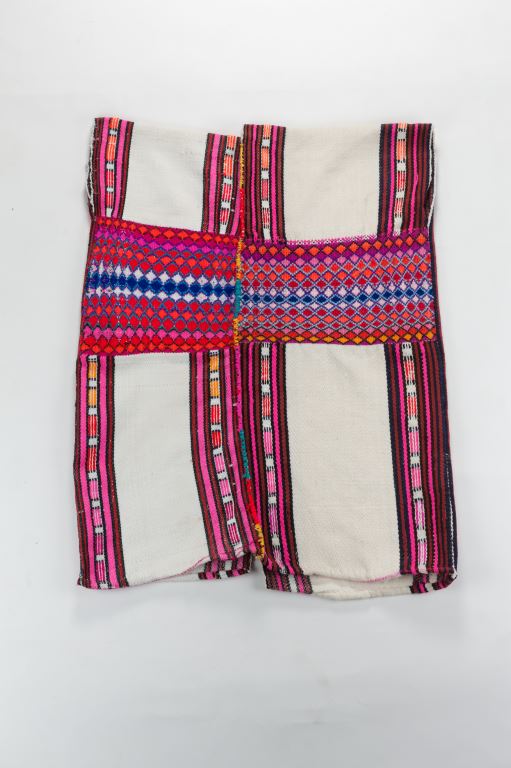 布農族男子長上衣縫製時一般選用自織麻布,由長條方形的布匹縫合而成,保留適當空間作為袖口,並運用斜紋織、夾織等技巧,為衣服添上圖紋。
