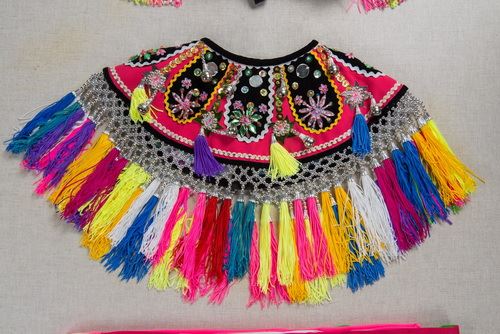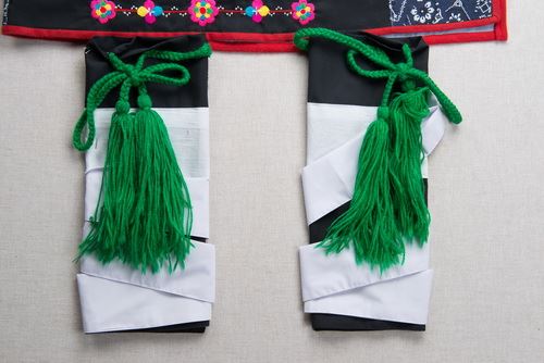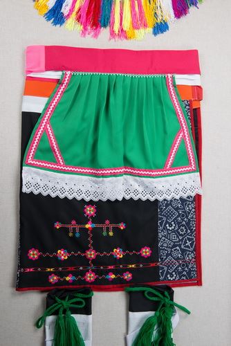 本件女子服飾包含opeh a kafung(頭飾)、alusaysay(霞披)、tapiyangan(腰裙)、maykaki(長裙)、talakes(護腿布)等,屬於海岸阿美的服裝特色。