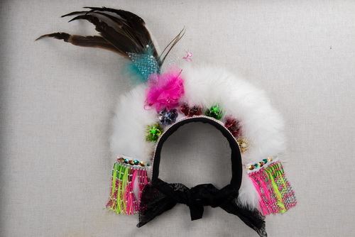 關於霞披的由來,人類學者李莎莉指出大約在1970年代左右,一位瑞士籍在當地傳教的神職人員仿效漢人服飾的造型,採用了雲朵以及劍帶等兩件服飾配件,為族人設計五彩繽紛的舞衣;族人覺得十分美觀,而又富有創意,因此在豐年祭時特別喜愛在傳統服飾外再披上一件霞披。