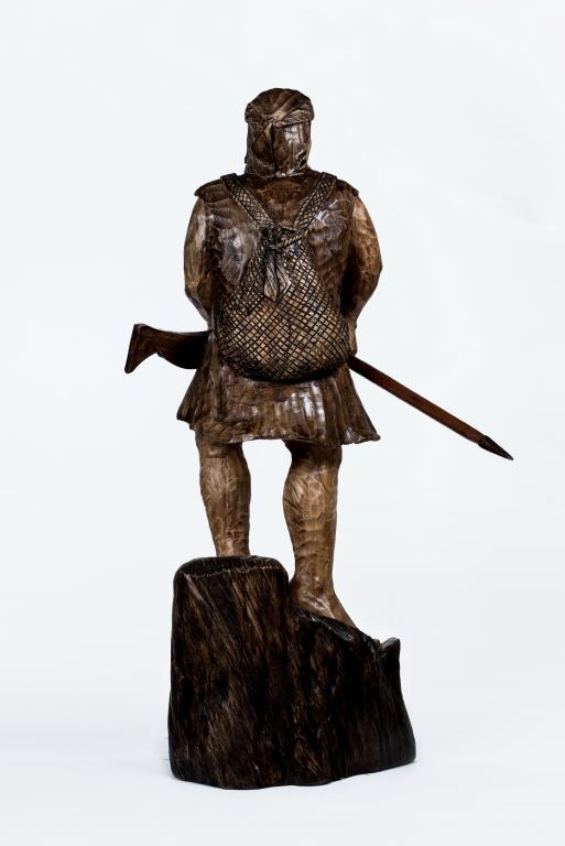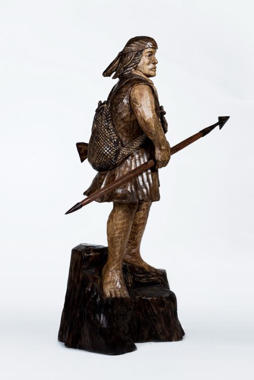 由於胡銀祿認為,早期原住民的生活重心就是打獵,所以他將以心中父親打獵情形雕刻出來,作品人物的眼神炯炯有神的凝視著遠方,尋找山中、海邊的獵物,手拿長矛、腰間配戴短刃,並且揹著母親編織的背包,放著母親為父親準備的食物,該作品不僅描述著打獵情境,更是蘊含著生活故事。