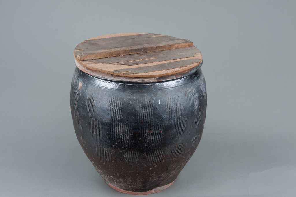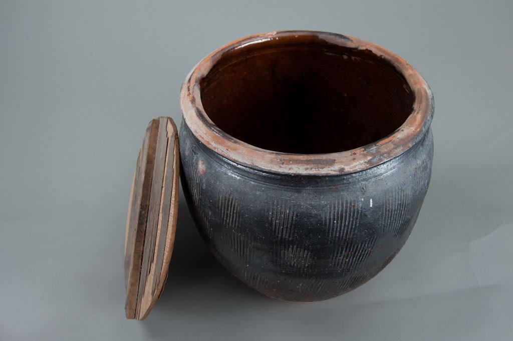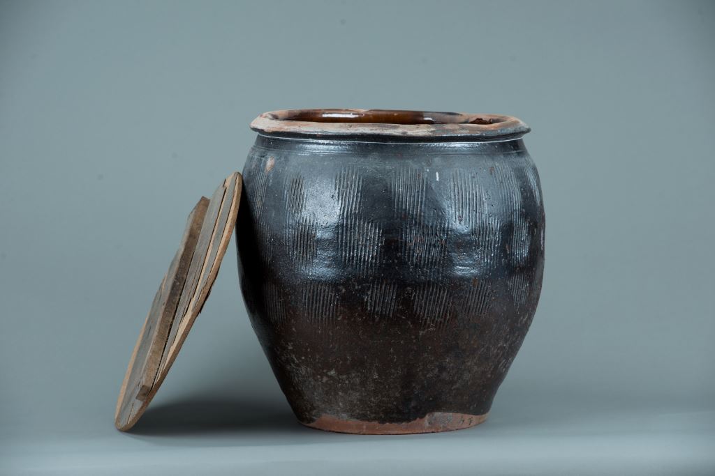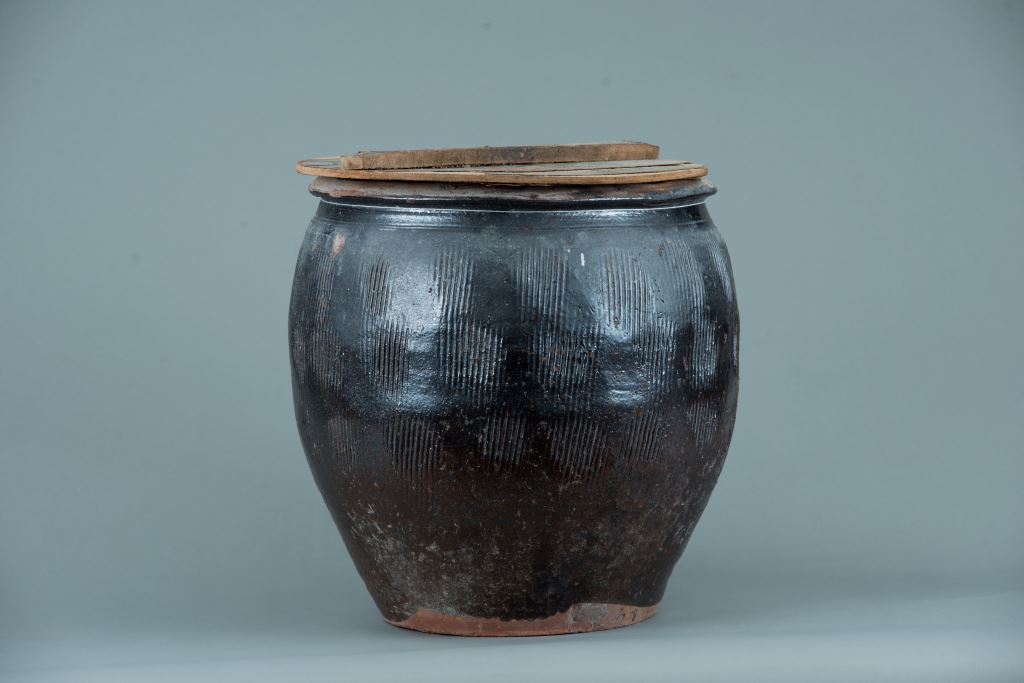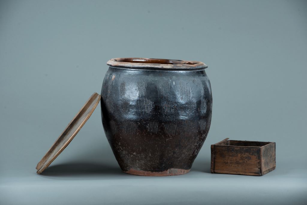 該米甕以陶製作,上方有木蓋,為早期阿美族人為盛裝食用白米或小米之器皿。木製的米斗,為量米的容器,其容量一個相當於一升米。