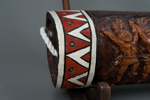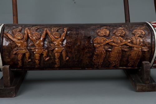 現今的木鼓則多用過去水平式背帶腰織機的經卷作為敲擊用,敲擊方式係將經卷放置於地面,以兩根長木棒向下敲擊擊木箱,發出聲響。