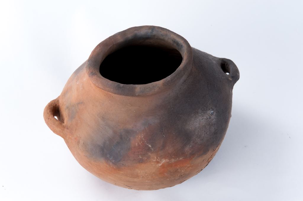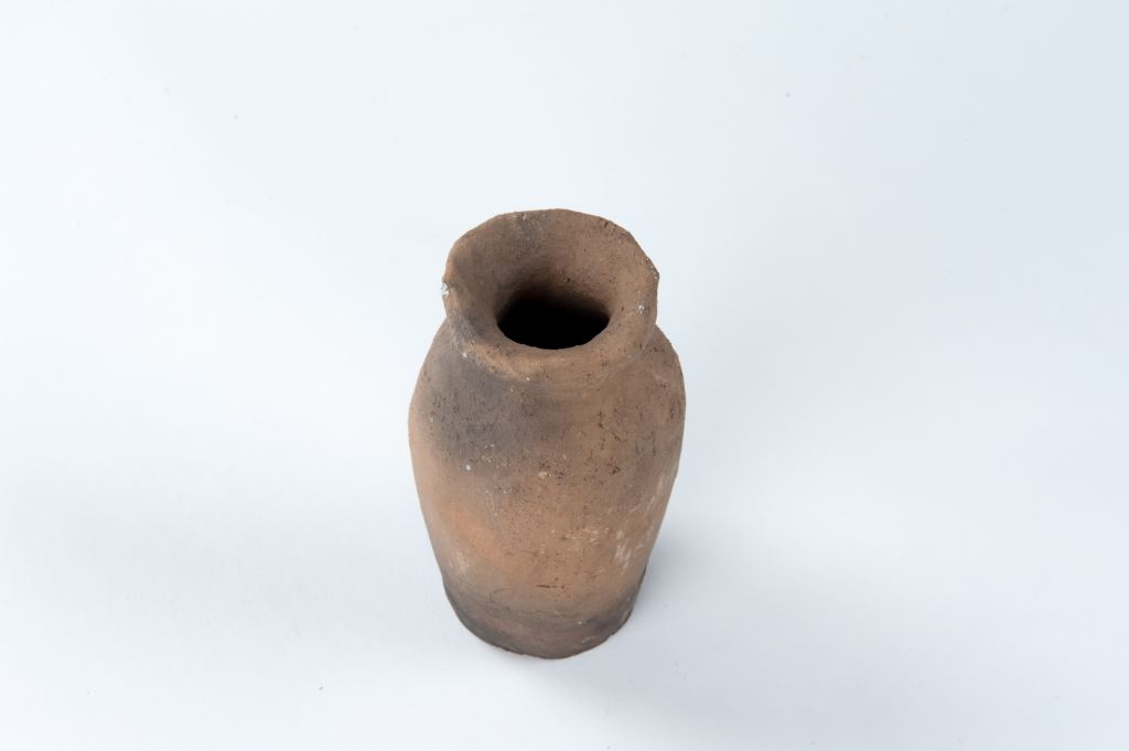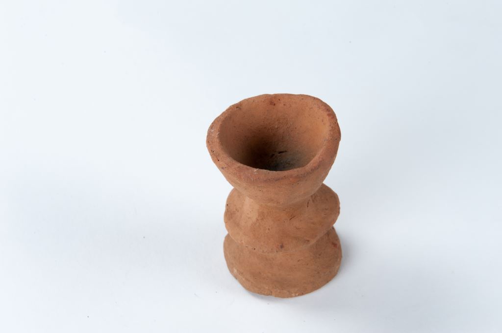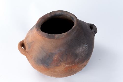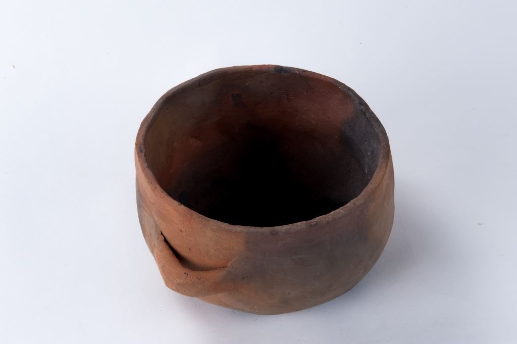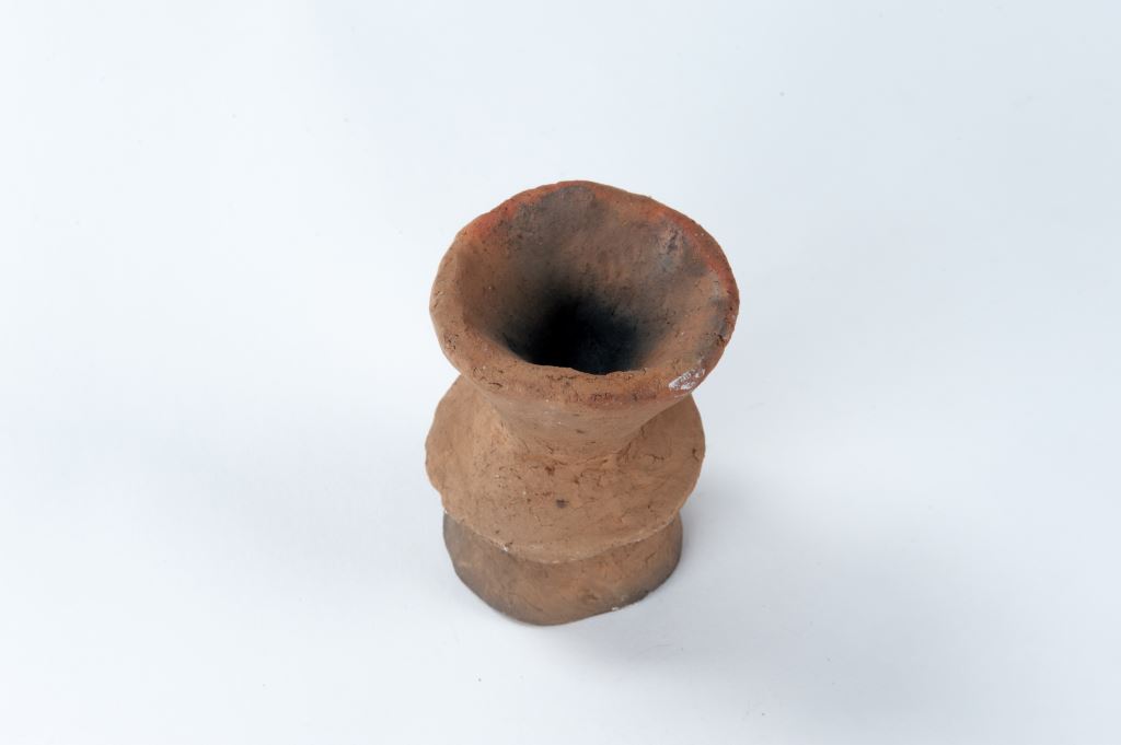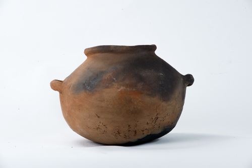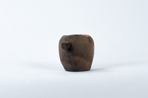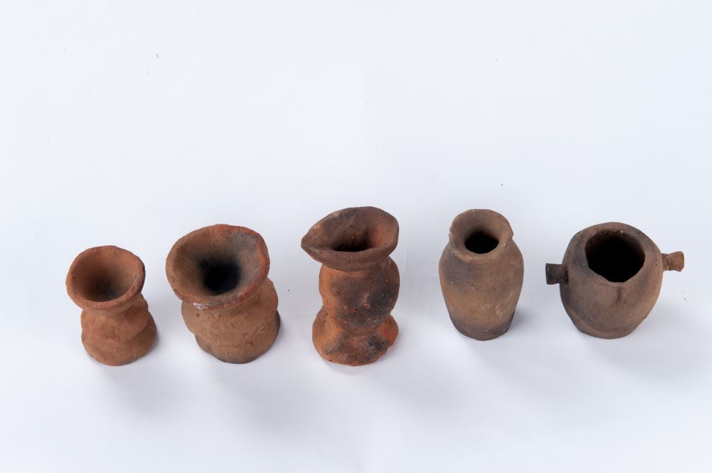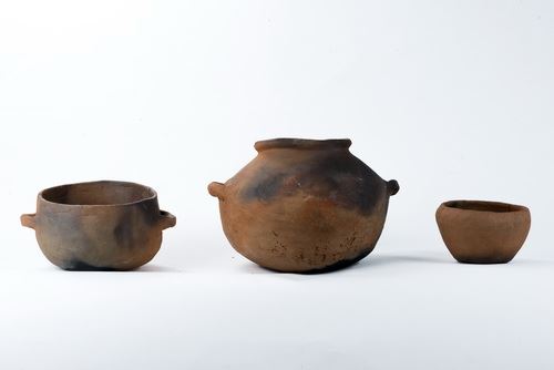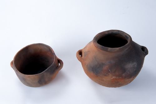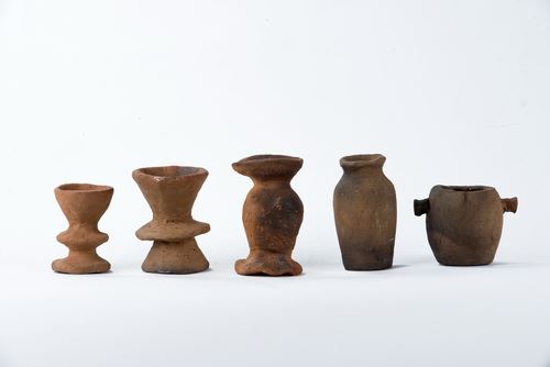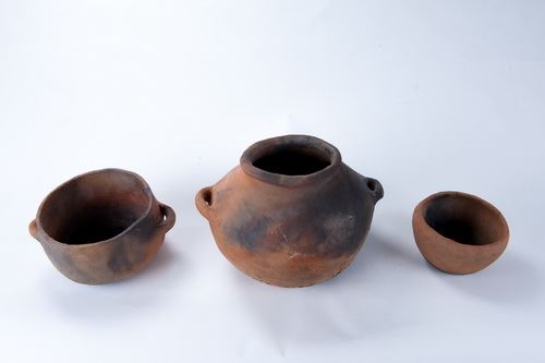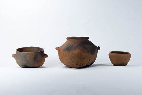 該件阿美陶共有八件,為近代阿美族人重拾製陶技藝所製作的陶器,形制上有公杯(折肩圈足酒器)、母杯(圈足酒器)、酒瓶、陶鍋、陶碗。