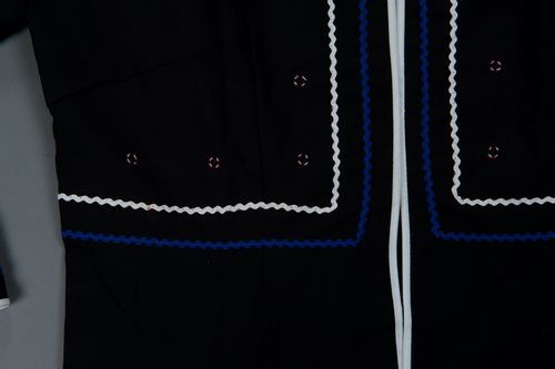 此件服飾為近代阿美族人為重現早期阿美族服飾形制特色,所重製的阿美族祭師服飾。